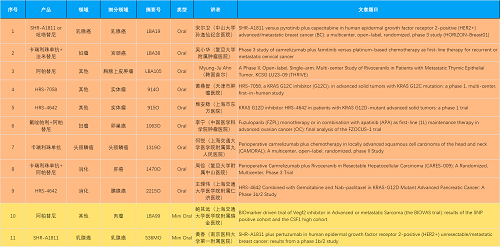 15款创新药包括10款已上市产品:注射用瑞康曲妥珠单抗(艾维达®,研发代号:SHR-A1811)、注射用卡瑞利珠单抗(艾瑞卡®)、苹果酸法米替尼胶囊(艾比特®)、甲磺酸阿帕替尼片(艾坦®)、马来酸吡咯替尼片(艾瑞妮®)、阿得贝利单抗注射液(艾瑞利®)、羟乙磺酸达尔西利片(艾瑞康®)、氟唑帕利胶囊(艾瑞颐®)、瑞维鲁胺片(艾瑞恩®)、海曲泊帕乙醇胺片(恒曲®),以及5款未上市产品,包括KRASG12C抑制剂HRS-7058、KRASG12D抑制剂HRS-4642、选择性的AR-PROTAC(雄激素受体-蛋白降解靶向嵌合体)小分子HRS-5041、抗PD-L1/TGF-βRII双抗瑞拉芙普-α注射液(SHR-1701)、Trop-2 ADC SHR-A1921。2类新药盐酸伊立替康脂质体注射液(II)(越优力®)及国内首仿药昂丹司琼口溶膜(艾其速®)各有1项研究入选。本文特对研究成果做了梳理,带领各位读者领略AG百家乐医药创新之光。