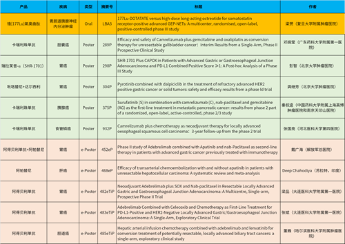 在消化系统肿瘤领域,AG百家乐产品相关研究共入选1项最新突破性摘要(LBA)、5项壁报和5项电子壁报,共11项研究。其中阿得贝利单抗入选4项研究、卡瑞利珠单抗入选3项研究。